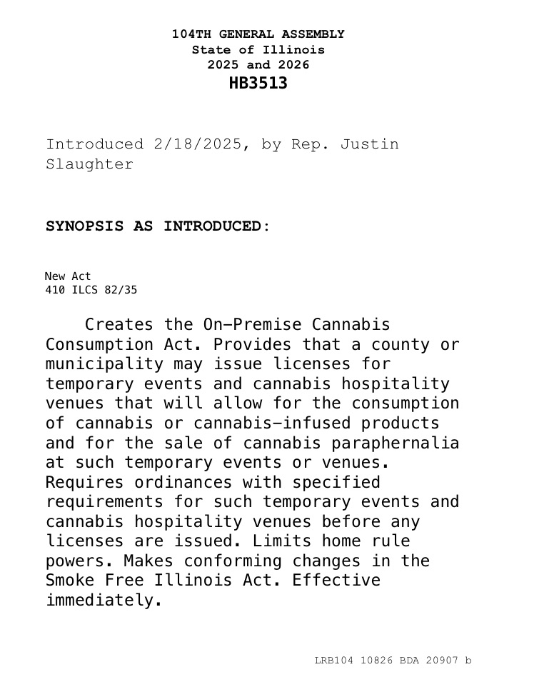Updating an existing law might be a more efficient way to establish necessary health and safety standards for consumption spaces without creating the same level of financial burden and complication that HB3061/HB3513 appears to introduce. It feels like these bills creates unnecessary steps and costs that could limit who can participate in this part of the cannabis market.