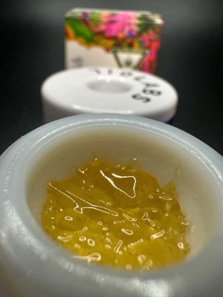 Aroma wise, this one wasn’t as pungent as I expected. There was still a pleasant mix of sweet and gassy notes on the nose, but nothing overly pungent when first cracking the jar. That wasn’t the case with the flavor. Off the first dab, the taste really popped much stronger than the smell, with a strong gassiness and a sweet berry like notes that instantly reminded me of Runtz (it helped that I’m currently smoking on a jar of Runtz by IE).