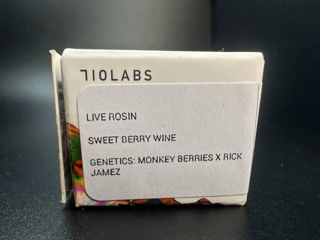 On a recent trip to Timber Cannabis Co. in New Buffalo, I picked up a jar of Sweet Berry Wine Live Rosin from 710 Labs, a cross between Monkey Berries and Rick Jamez, and something that admittedly caught my eye due to the strain name. 710 Labs has a reputation for being one of the more premium rosin brands in Michigan, as well as most markets they operate in, and that reputation usually comes with a higher price. While it’s definitely on the pricier side, I’ll grab a 710 jar or vape from time to time to treat myself.